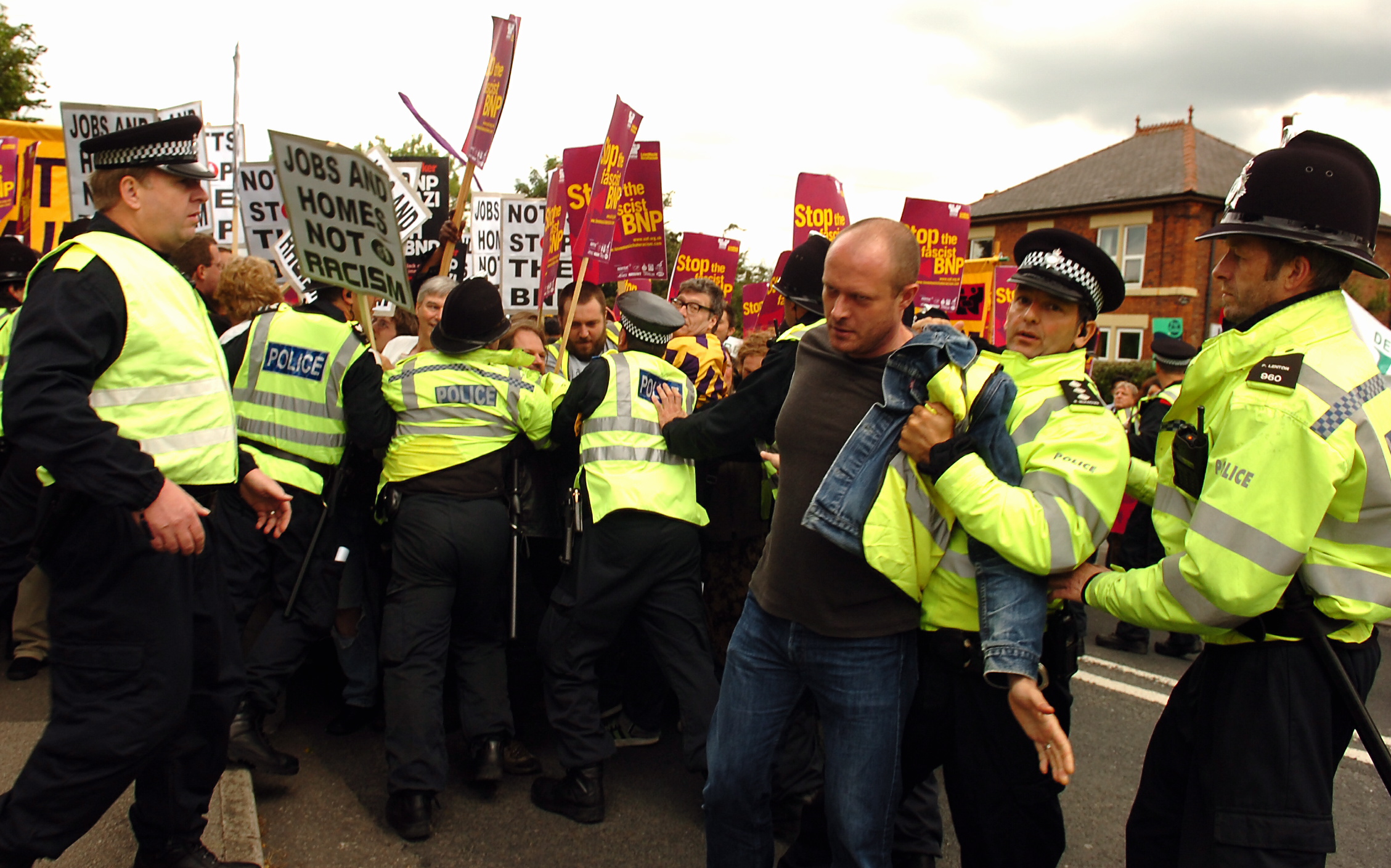 Published October 16, 2013 at 2257 × 1409 in Home ← Previous Next → Protestors are arrested at a demo against the BNP Festival in Codnor. Like Loading...
